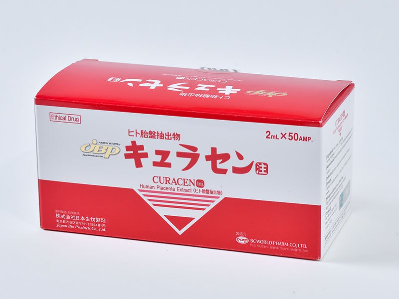 CURACEN INJECTION is manufactured using JBP’s unique technologies, which ensure 100% safety of drugs. JBP (Japan Bio Products) Company is engaged in the production of human placenta extract for 40 years. Its share of the placenta injection market is about 80%.